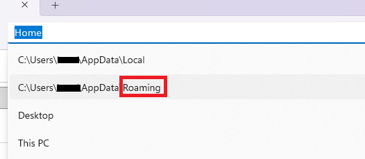 - Click on the File Manager location bar, and type %appdata%, and hit enter.