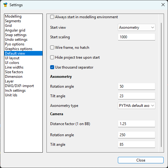 PYTHA 26 gives users the option to always have PYTHA start in the same state, regardless of the settings when closed. One option is to always start PYTHA 26 with the Project Tree deactivated. To change this setting: Launch PYTHA 26 Open Environment > ...