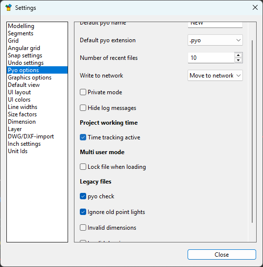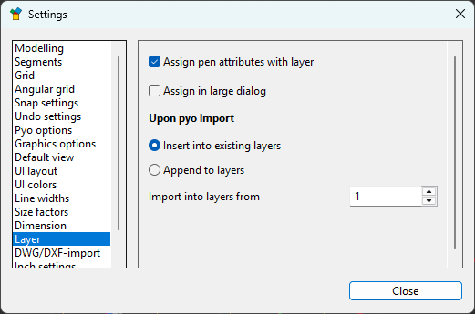 PYTHA 26 Environment - Part to Layer Dialogue Options